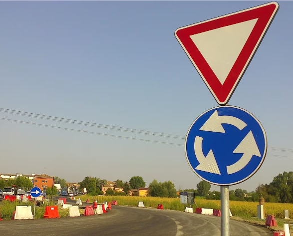 •IL Segnale Raffigurato è un segnale di precedenza ovvero nel immagine indica che nel incrocio regolato dalla rotatoria DOBBIAMO dare la precedenza a tutti i veicoli che si trovano al interno della rotatoria. In prossimità del segnale raffigurato bisogna rallentare e all’occorrenza fermarsi per dare la precedenza , di norma lo troviamo a 150 metri prima di una rotatoria oppure un incrocio dove appunto occorre dare la precedenza.