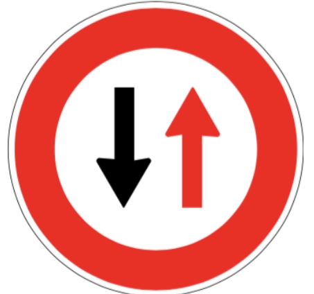 •DARE LA PRECEDENZA NEI SENSI UNICI ALTERNATI e un segnale di prescrizione (precedenza). obbliga, di dare precedenza ai veicoli provenienti dal senso opposto. Si trova quando in una strada a doppio senso vi sia una strettoia oppure un cantiere stradale (ad esempio parte della carreggiata sia sbarrata per lavori) che permette il transito di una sola fila di veicoli.