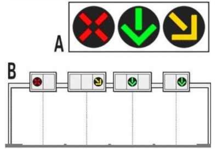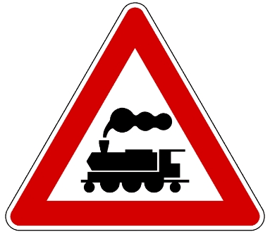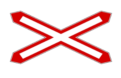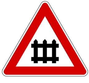 •PASSAGGIO A LIVELLO SENZA BARRIERE: indica un passaggio a livello senza barriere ed è integrato con il pannello distanziometrico a tre barre rosse
