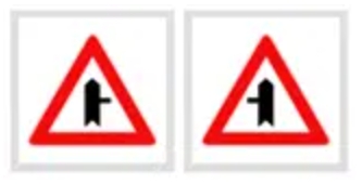 •CONFLUENZA : i cartelli indicano un incrocio con una corsia di accelerazione o appunto una confluenza, o a destra o a sinistra
