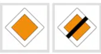 •DIRITTO DI PRECEDENZA e FINE DIRITTO DI PRECEDENZA: indicano che hai il diritto di passare, e la relativa fine di questo diritto. Saranno quindi i guidatori sull’altra strada a doversi fermare permetterti il passaggio