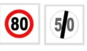 • LIMITE MASSIMO di VELOCITÀ: indica la velocità massima in km/h a cui si può circolare in quella strada. Il relativo cartello di fine limite indica che il divieto di superare la velocità riportata è terminato