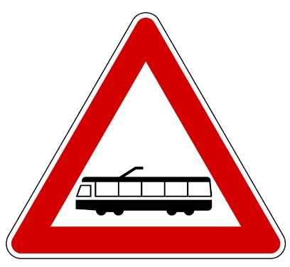 •ATTRAVERSAMENTO TRANVIARIO: presegnala fuori e dentro i centri abitati una linea tranviaria non regolata da semafori che interseca o riduce la carreggiata stradale