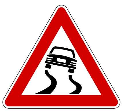 •STRADA SDRUCCIOLEVOLE: presegnala un tratto di strada che in particolari condizioni climatiche o ambientali può diventare sdrucciolevole. I pannelli integrativi illustrano i motivi di eventuale pericolo