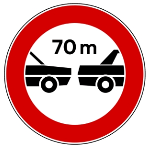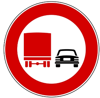 •DIVIETO DI SORPASSO PER VEICOLI DI MASSA A PIENO CARICO oltre 3,5 t: indica il divieto a tutti i veicoli, non adibiti al trasporto di persone, di massa a pieno carico superiore a 3,5 t di sorpassare i veicoli a motore. Consente il sorpasso dei veicoli privi di motore solo se la manovra può compiersi entro la semi carreggiata. Si fa riferimento alla massa a pieno carico indicata sulla carta di circolazione (tara più portata). Un pannello integrativo può specificare un diverso valore della massa