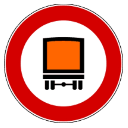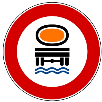 •DIVIETO DI TRANSITO AI VEICOLI CHE TRASPORTANO MERCI PERICOLOSE: vieta il transito ai veicoli che trasportano merci pericolose, come es: esplosivi, benzina, materie tossiche o radioattive