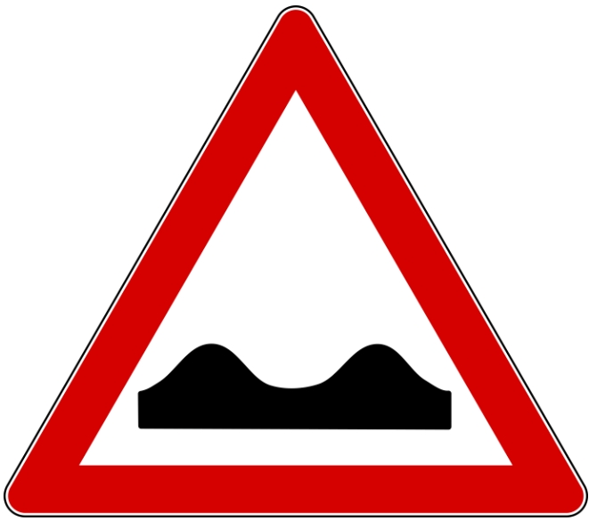 IL segnale raffigurato è un segnale di pericolo che indica una strada dissestata , ovvero una strada in cattivo stato o con pavimentazione irregolare. Una strada in cattivo stato o con pavimentazione irregolare è segnalata da uno specifico segnale di pericolo, il segnale “strada deformata” (triangolare con il vertice in alto e il simbolo del doppio dosso al centro)